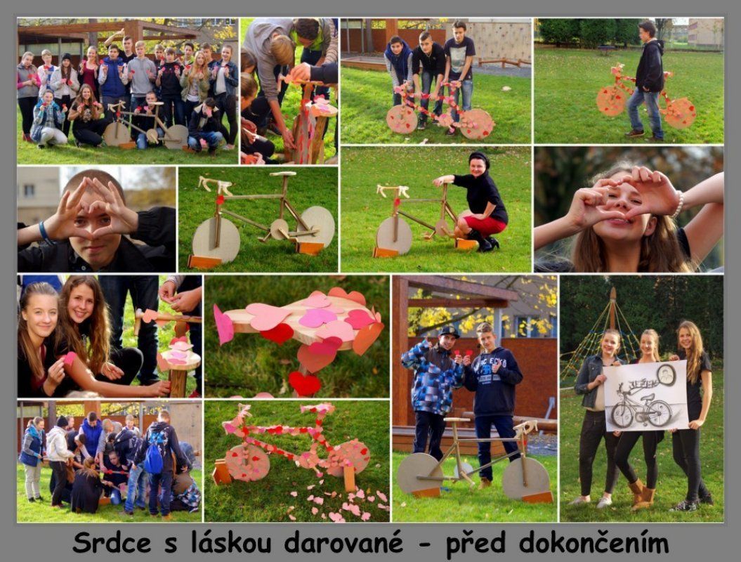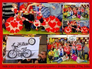 „Jsem na všechny moje deváťáky pyšná. Nejenže ukázali, jak jsou šikovní, zruční a pracovití, jak se umí nadchnout pro společnou věc, která jim dává smysl, ale hlavně… ukázali, že jsou citliví, že každý z nich má srdce na pravém místě, že v nich je mnoho dobrého a je za co je chválit. Naše „Srdce kolem dokola“ věnované Jiřímu Ježkovi má, bohužel, jedno mínus. Zatím je u mě v kabinetě. Chodí se na ně dívat učitelé-kolegové, zvědavě nakukují děti z jiných tříd a upřímně obdivují, co jejich nejstarší spolužáci dokázali. Jenže nepatří mně, je pro Jiřího Ježka. Snad aspoň na fotkách uvidí, že v Ostravě je třída dětí, kteří na něj myslí a mají pro něj Srdce s láskou darované.