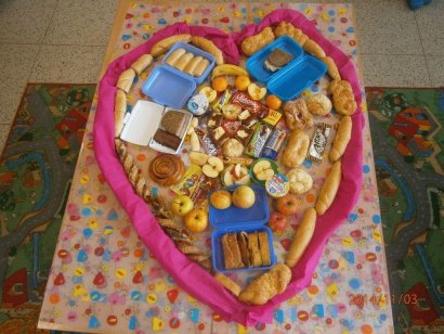 Kolektivy žáků napříč všemi ročníky vyráběly rozmanitá srdce pro Hanku, z nichž jsme utvořili výstavu ve školní jídelně.