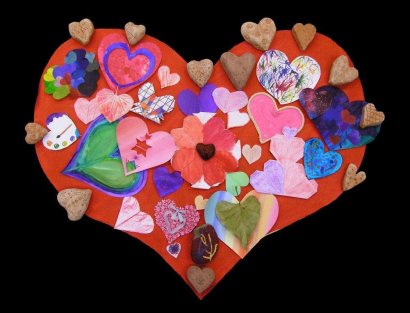 Kolektivy žáků napříč všemi ročníky vyráběly rozmanitá srdce pro Hanku, z nichž jsme utvořili výstavu ve školní jídelně.