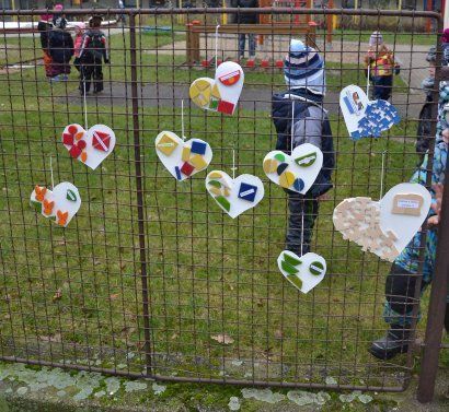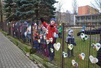 Kolektivy žáků napříč všemi ročníky vyráběly rozmanitá srdce pro Hanku, z nichž jsme utvořili výstavu ve školní jídelně.