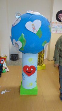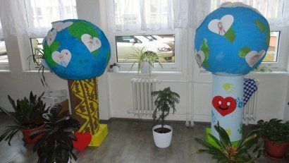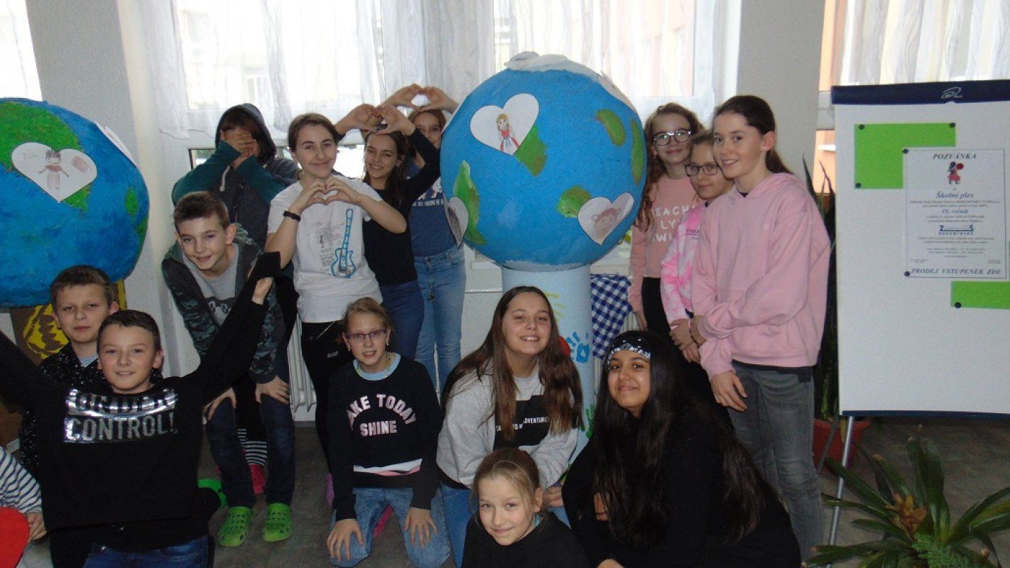 Kolektivy žáků napříč všemi ročníky vyráběly rozmanitá srdce pro Hanku, z nichž jsme utvořili výstavu ve školní jídelně.