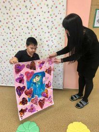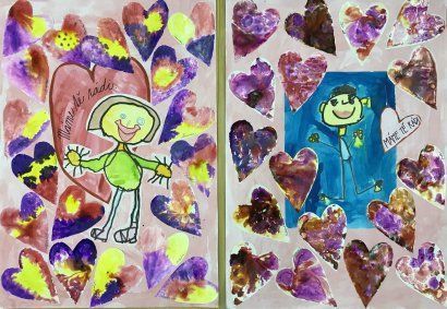 Kolektivy žáků napříč všemi ročníky vyráběly rozmanitá srdce pro Hanku, z nichž jsme utvořili výstavu ve školní jídelně.