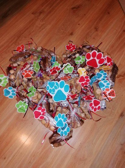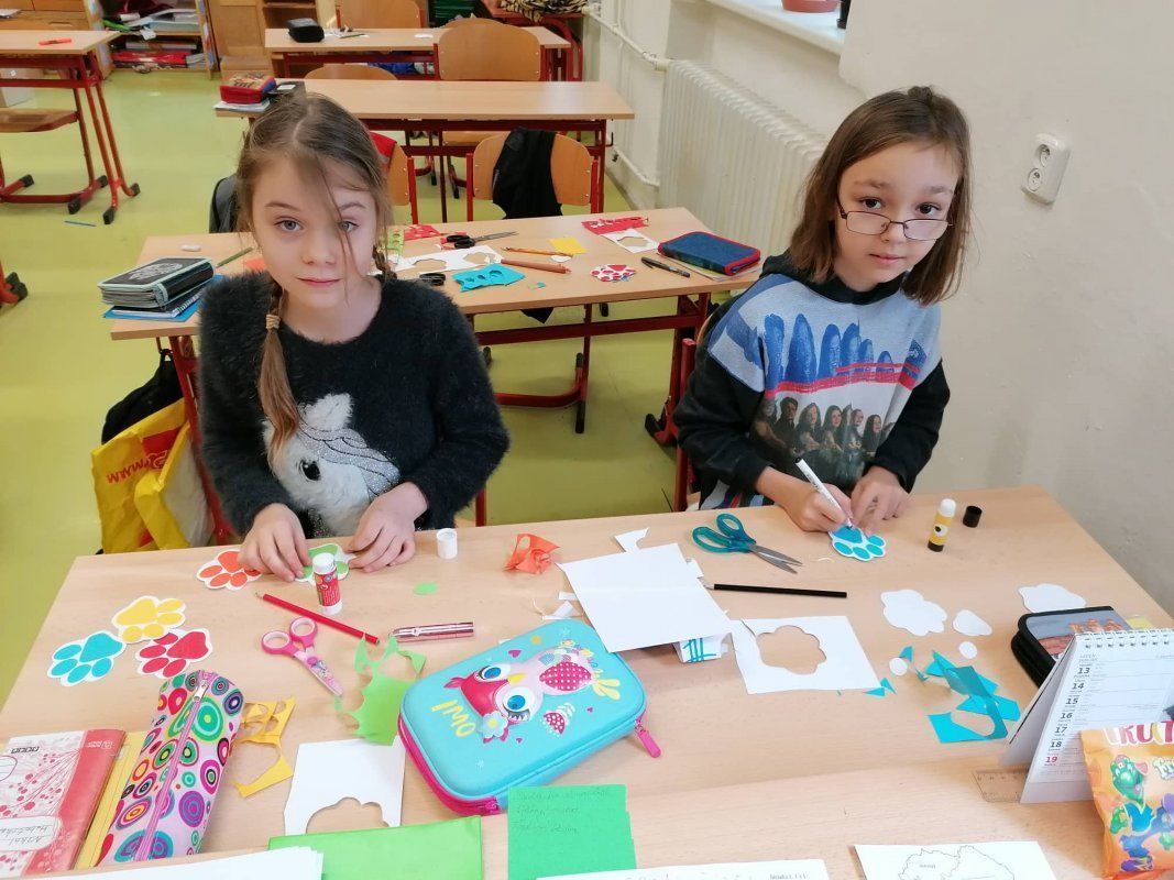 Kolektivy žáků napříč všemi ročníky vyráběly rozmanitá srdce pro Hanku, z nichž jsme utvořili výstavu ve školní jídelně.