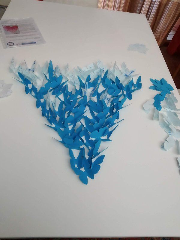 Kolektivy žáků napříč všemi ročníky vyráběly rozmanitá srdce pro Hanku, z nichž jsme utvořili výstavu ve školní jídelně.